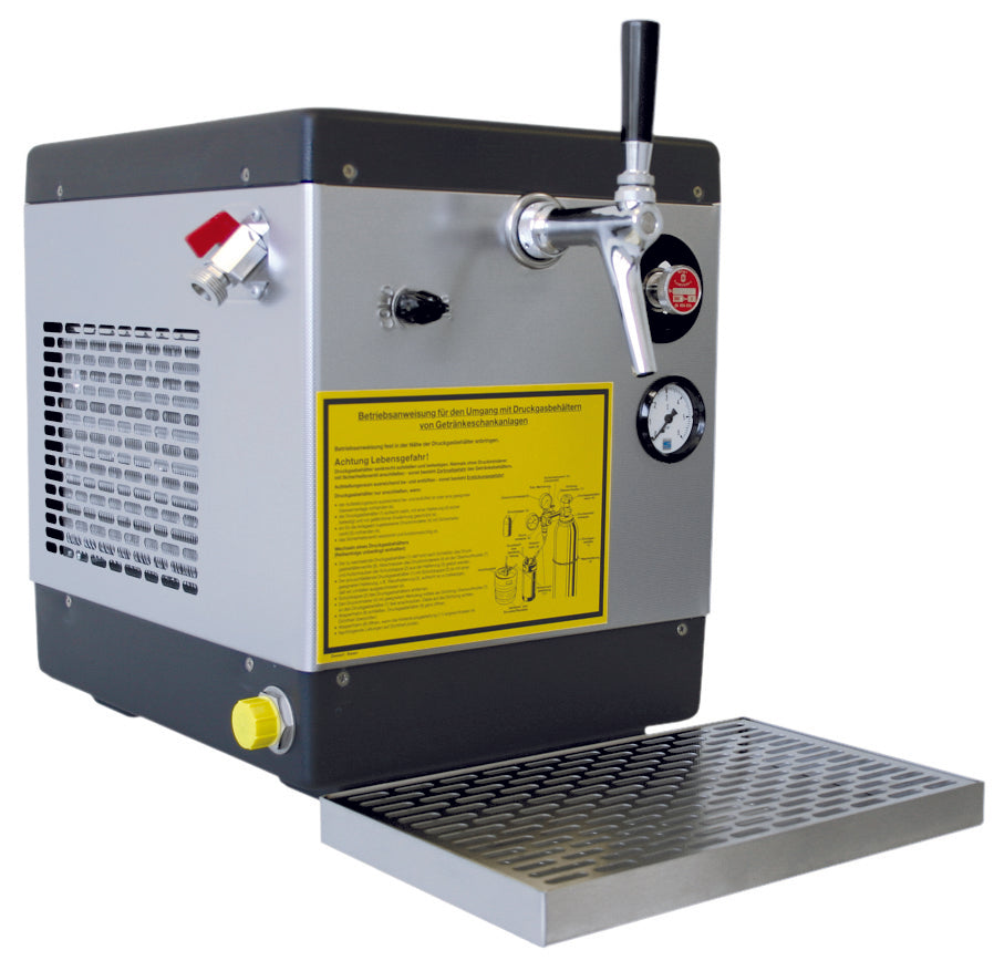 Zapfkapazität kontinuierlich: 64 L/h bei 10° C TD, Leitungsdurchmesse: NW 7 mm, Leistung: 1 x Bier, Kältemittel: R290, Kälteleistung: 744 W / 2.664 kJ/h (640 kcal), Stromspannung: 230 V / 50 Hz, 380 W, 2,5 A, Kompressor: 3/8 PS, Material Gehäuse: Edelstahl Maße B/T/H mm: 310/380/395 (T mit Tropfschale 650) Gewicht: 30 kg Lieferung inkl. Tropfschale, Schläuche, integriertem Druckminderer, Kontrollmanometer, Hochdruckschlauch und Betriebsanweisung.